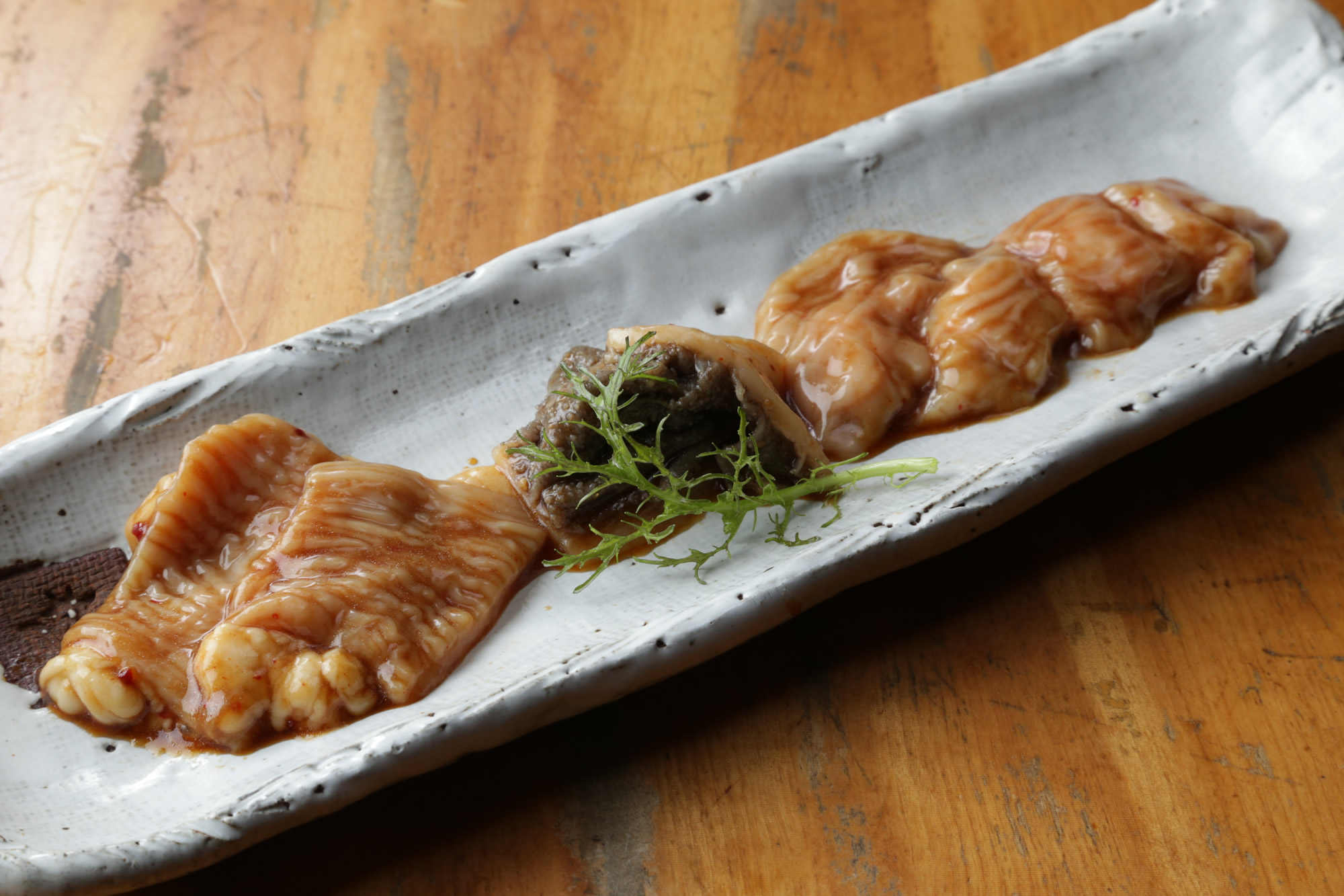 自由に走り回ってきた牛たちのホルモンは、脂が少なく、